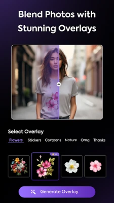 Ai Photo to Facial Expression. The app also offers exciting Ai image overlay tools that let you enhance your photos with unique stickers and styles. Choose from overlays like cartoon effects, flowers, nature, OMG stickers, and more to add a creative touch to your images. Additionally, with the Combine Image Tool, you can easily merge two images effortlessly using advanced Ai techniques. This feature is perfect for creating artistic compositions or blending multiple pictures for a stunning effect. Try the Ai Photo to Facial Expression app and bring a new level of creativity to your photos!