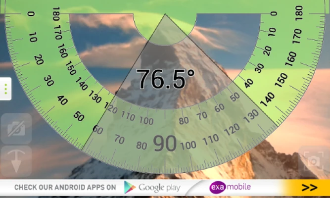 Protractor - smart instrument to measure angles. Turn on the camera mode and measure the angle of buildings, mountains, or any other object around you.